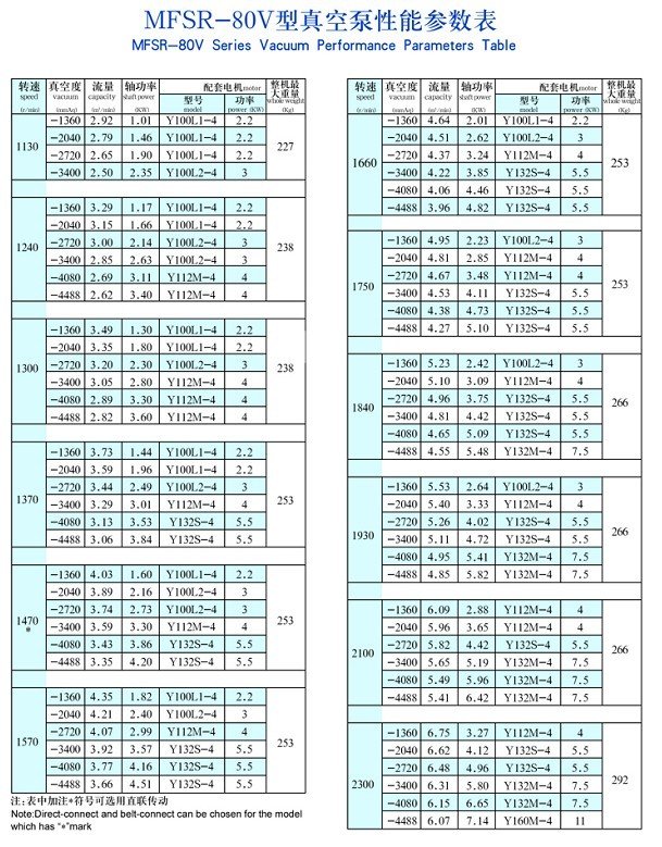 有MFSR-V系列罗茨真空泵的详细技术参数吗?